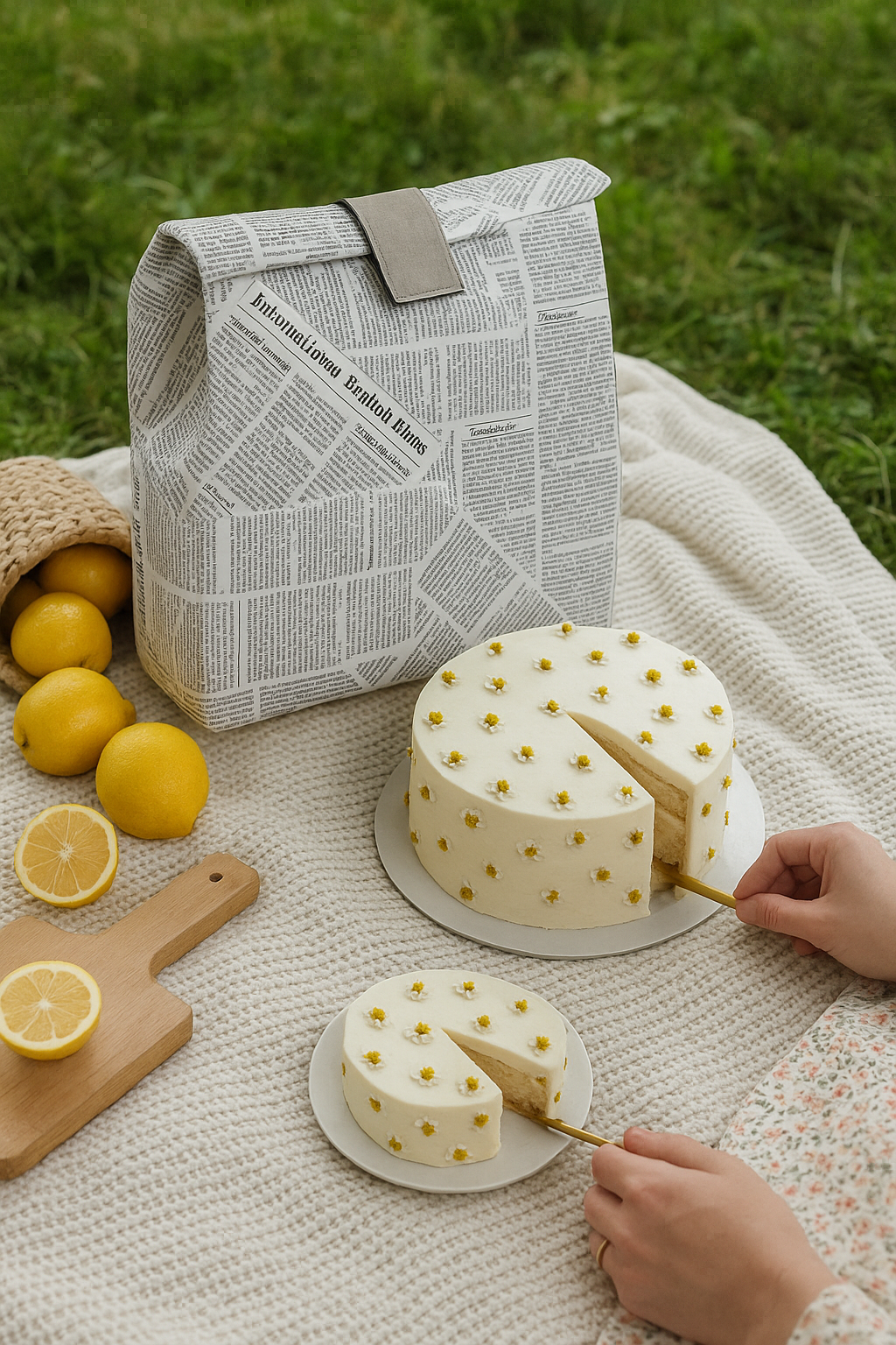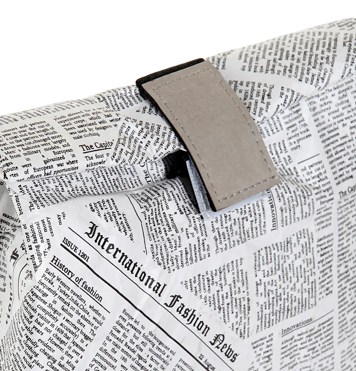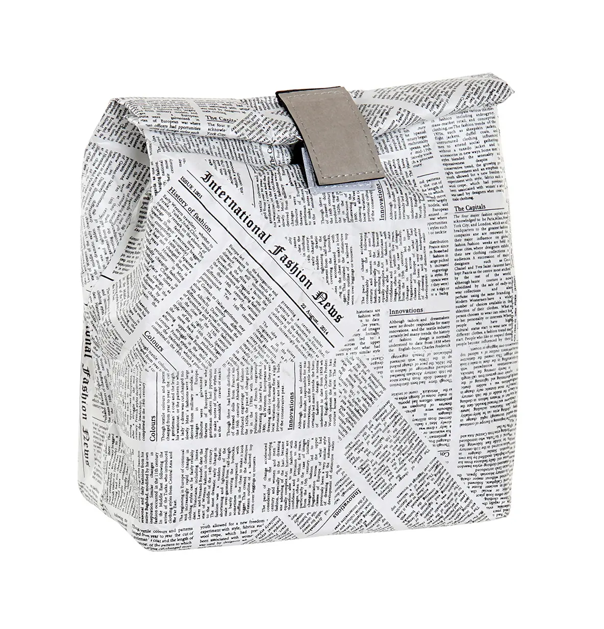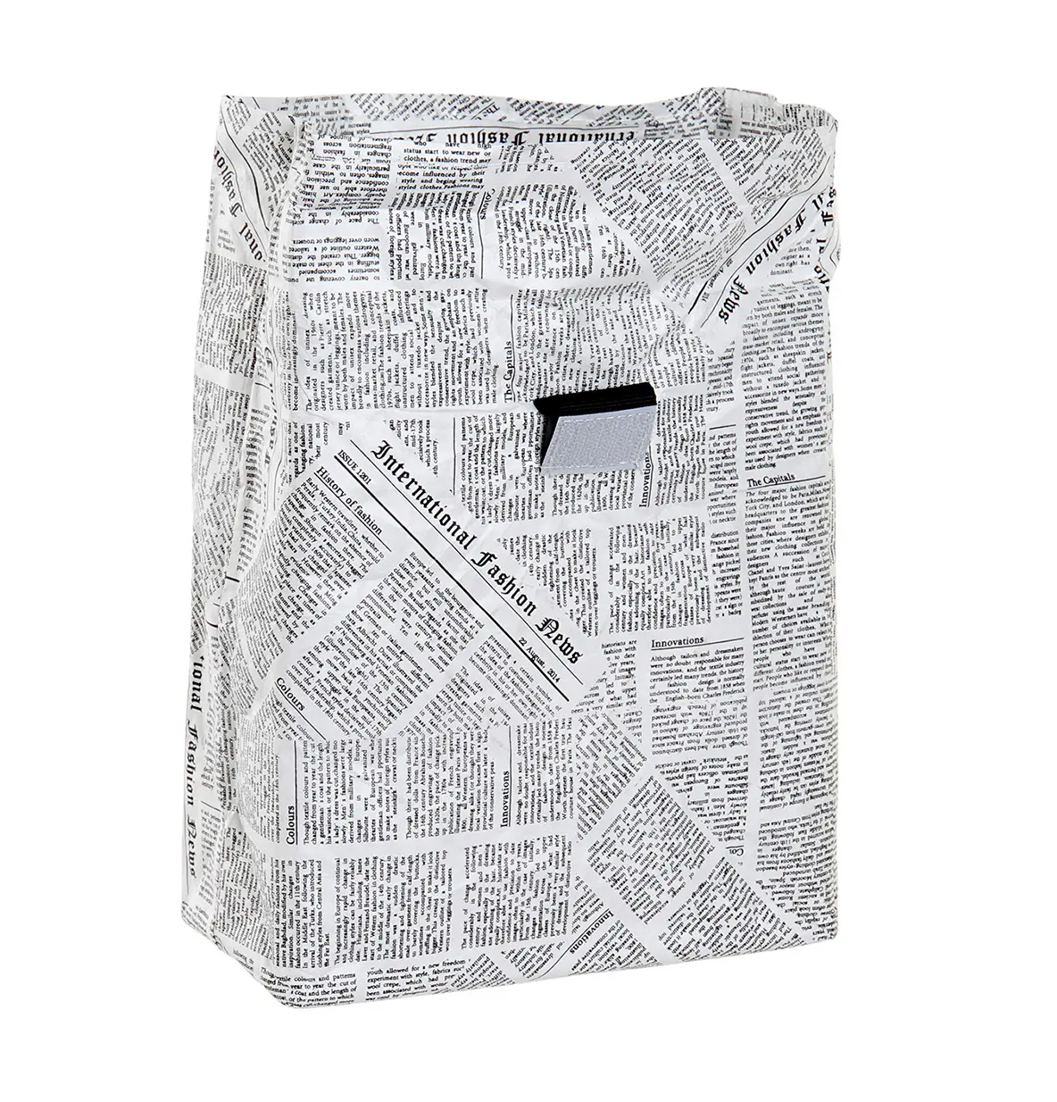 Pequeña bolsita de transporte de alimentos, con una apariencia de envoltura en papel de periódico.