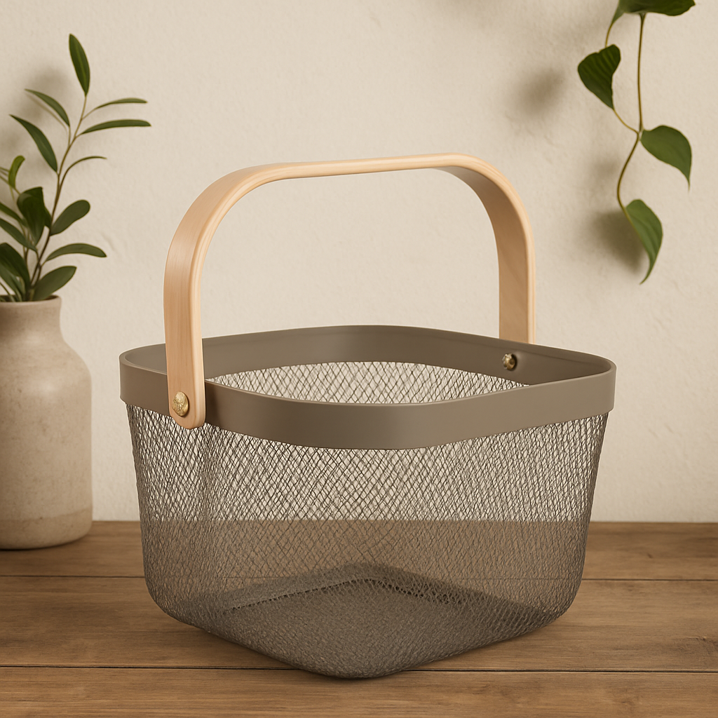 Organizador de metal, color gris y madera para cualquier estancia de tu hogar, baño, cocina, juguetes, lavandería ¿qué uso le vas a dar ?