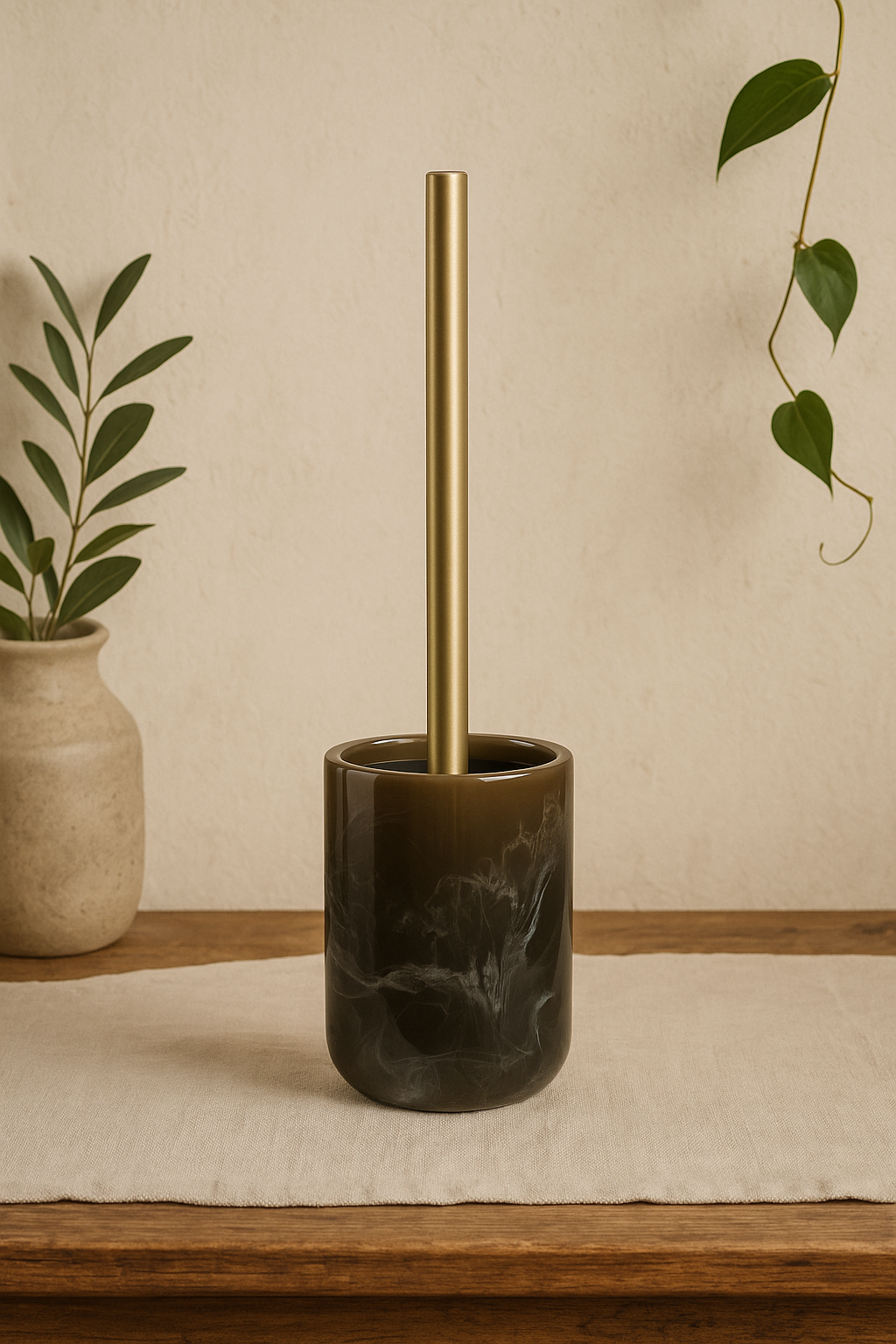 Escobilla de baño, con cepillo en color negro. Material resina. Porque el baño a parte de funcional también tiene que tener ese punto decorativo. Puedes buscar también otros artículos de la colección.
